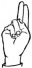 На ћирилици написано ШАЛЕ КАРАВЕСОВИЋ састоји се из 15 слова [?]. Исписано ћириличном једноручном азбуком за глувонеме: